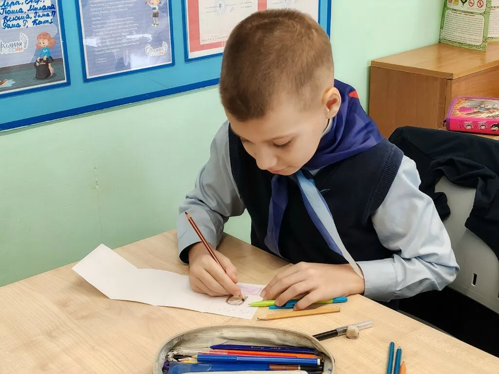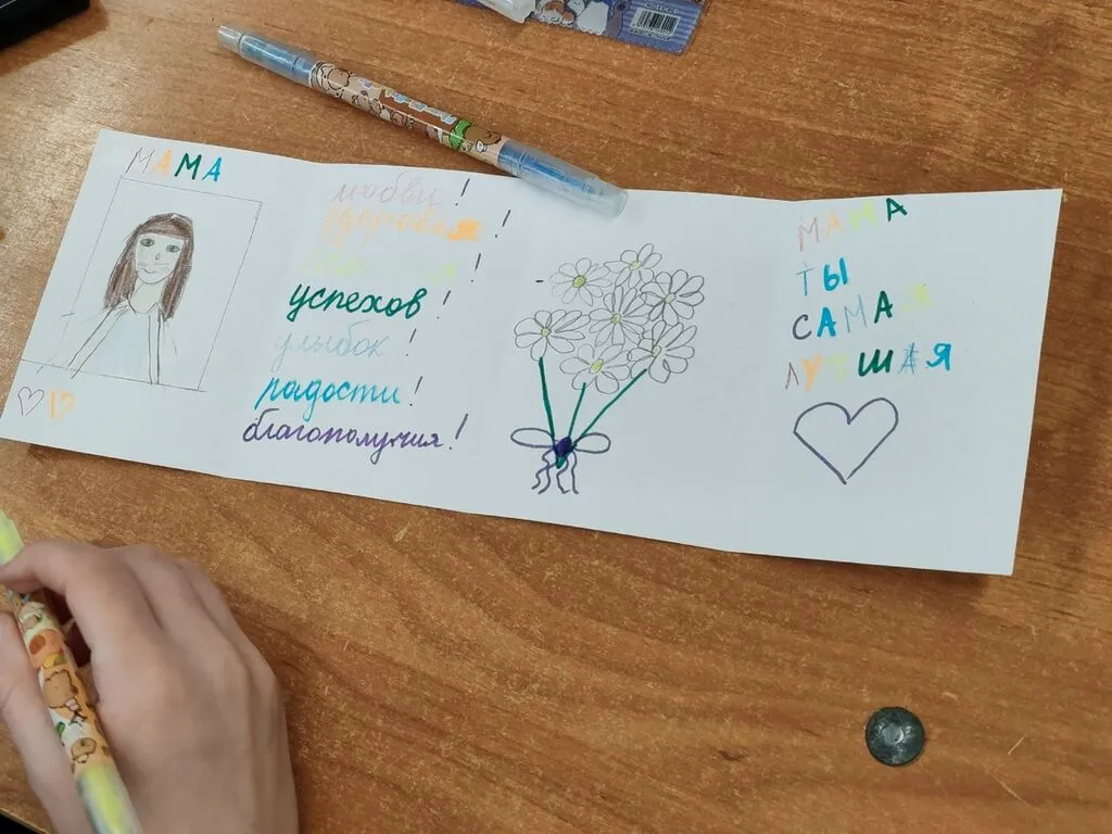 Советник директора по воспитанию вместе с участницей первичного отделения «Движения Первых» Парыгиной Екатериной помогли ребятам создать необычный подарок — «Книжку тёплых слов».