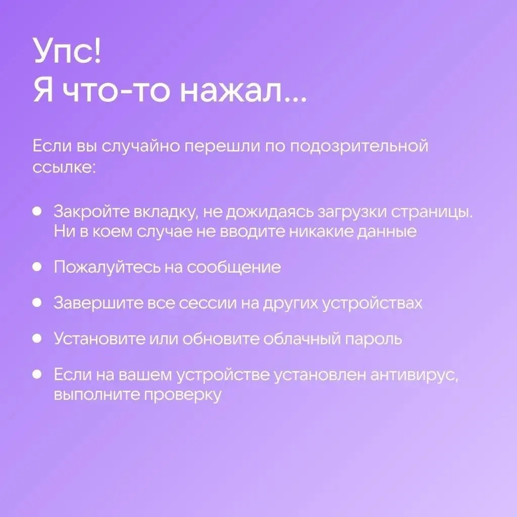 Как не попасться и что делать, если аккаунт всё же взломали, — рассказали в карточках.