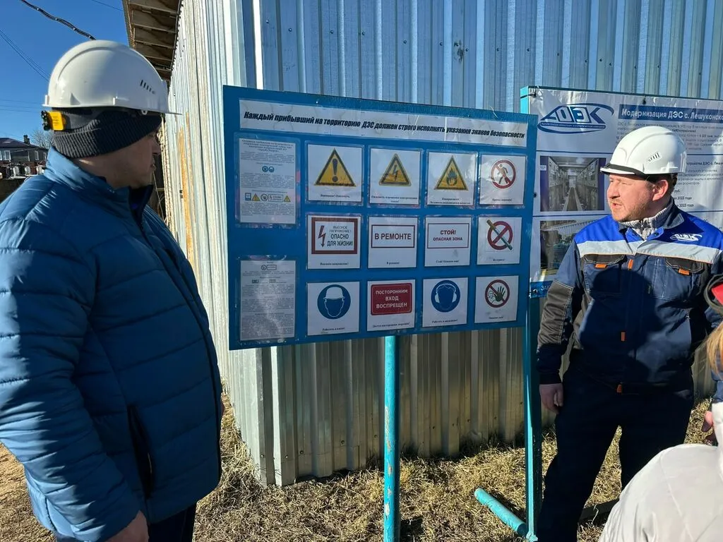 О сложном — просто: Главный инженер О. А. Фатьянов и начальник станции А. Ю. Конарев объяснили, как станция обеспечивает энергией не только наше село, но и все близлежащие деревни.