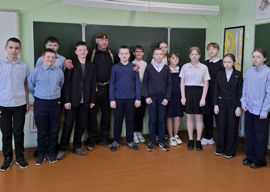 В прошлом — активный участник школьной «Зарницы», сегодня — настоящий защитник Родины. Юрий рассказал ребятам о штурмовых буднях, боевом братстве и о том, что такое истинное мужество.