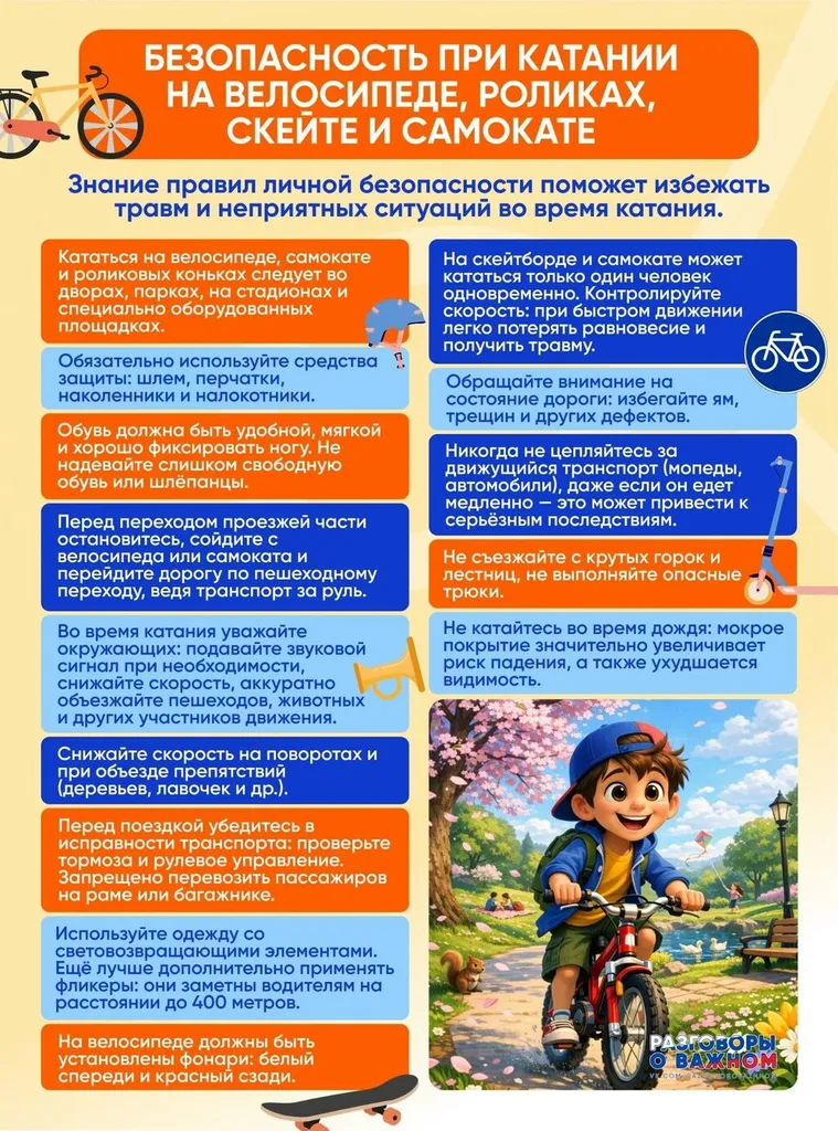 Памятка: безопасность при катании на велосипеде, роликах, скейтборде и самокате