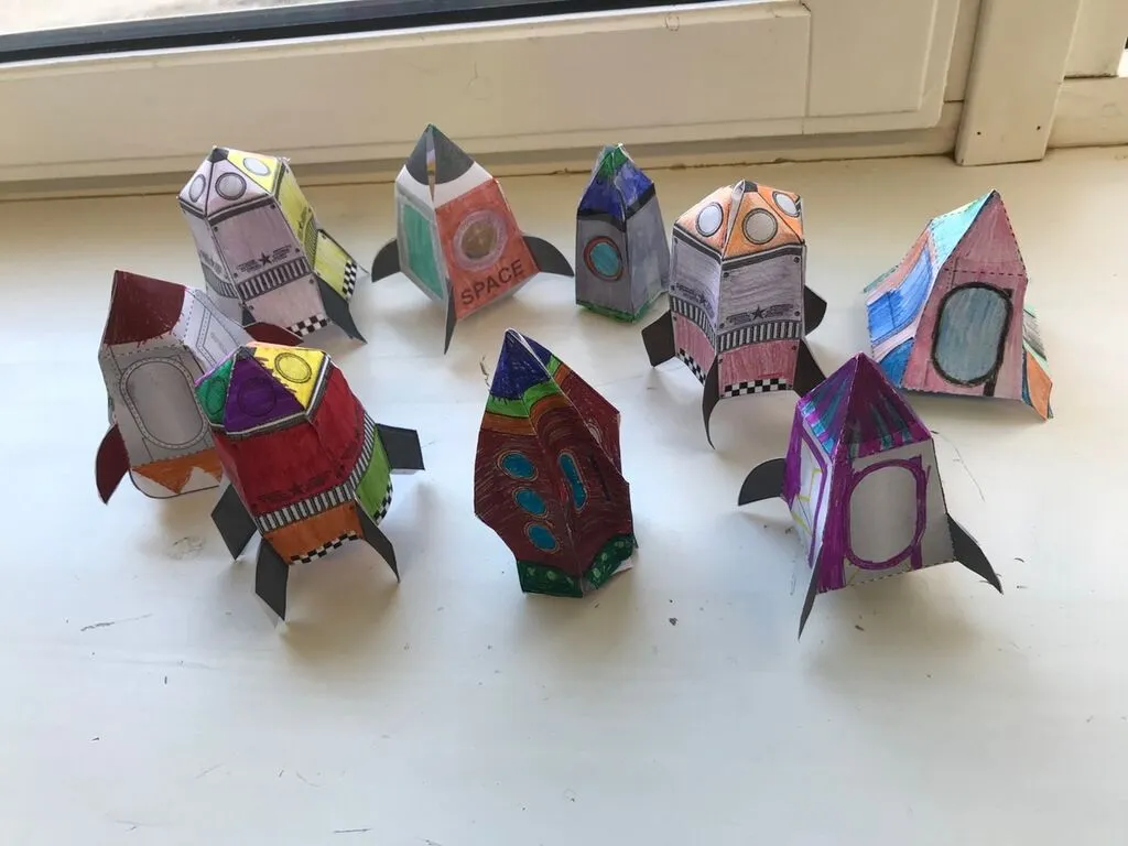 * раскрашивали свои ракеты — кто во что горазд: яркие полосы, звёздные узоры, логотипы космических агентств!