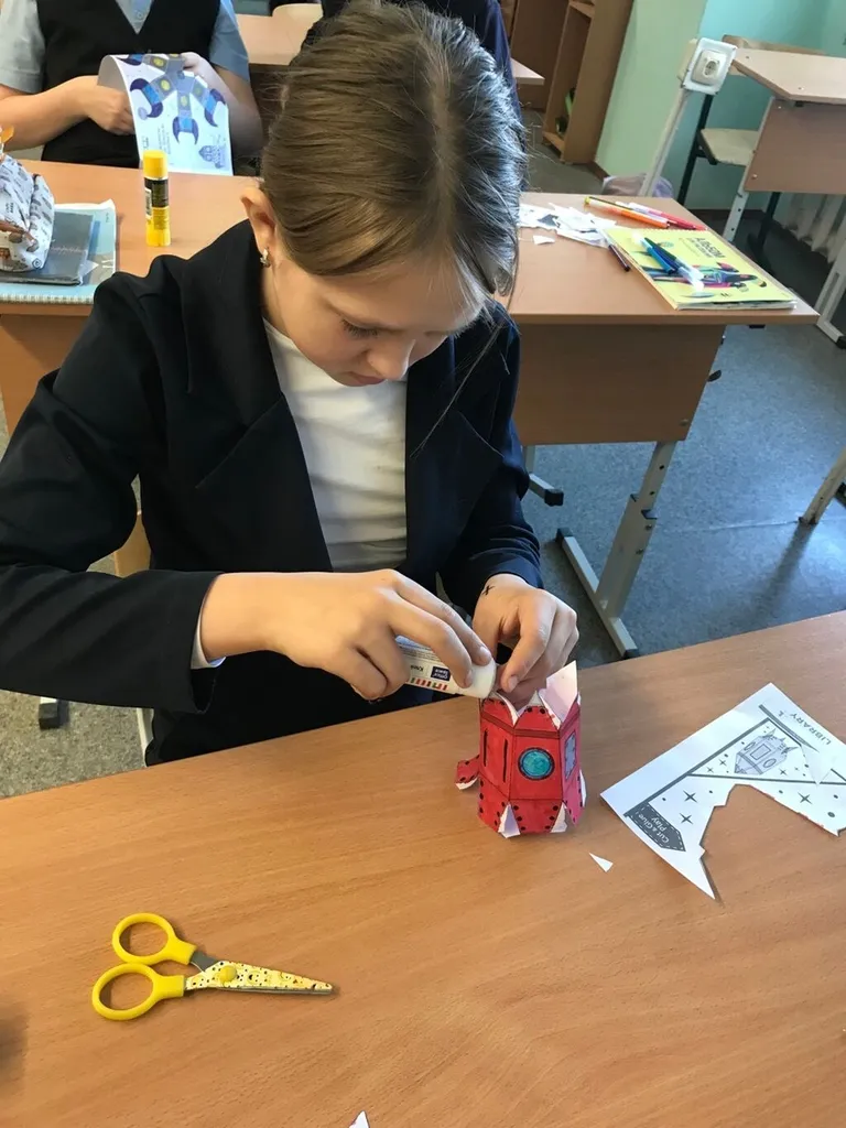 Ребята создавали макеты ракет из бумажных заготовок.