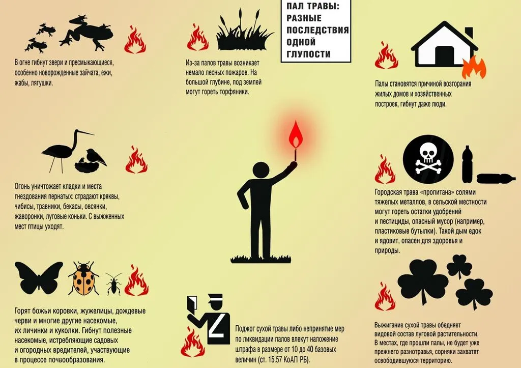 4) Не жгите траву, не оставляйте горящий огонь без присмотра;