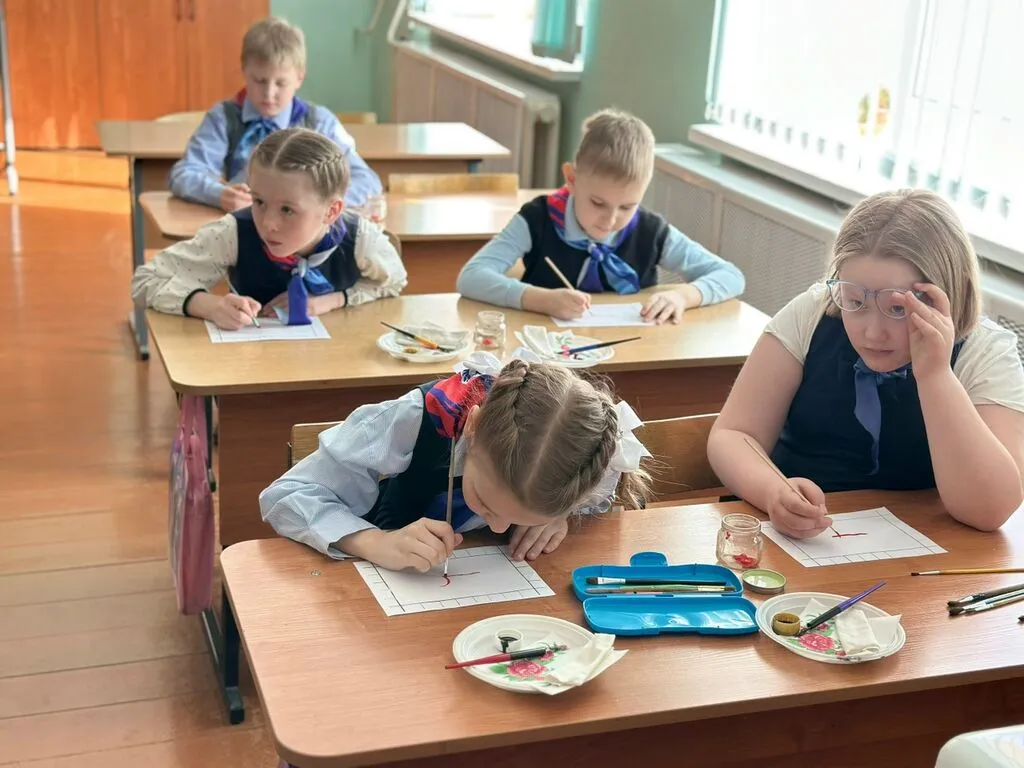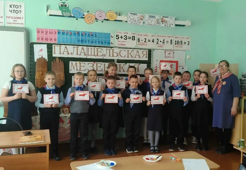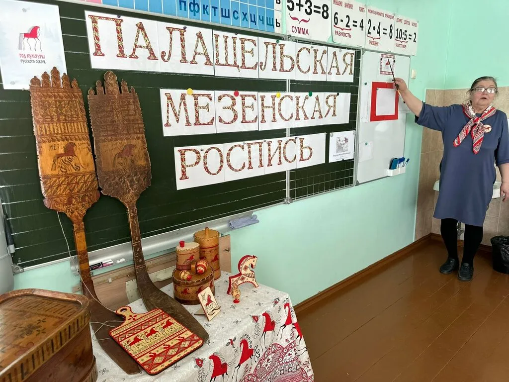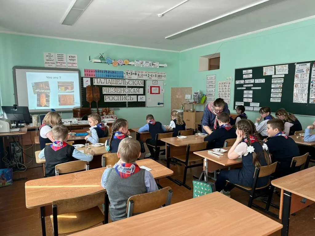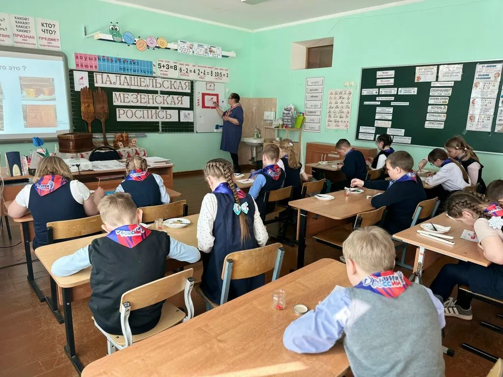Для обучающихся 2–3 классов состоялся увлекательный мастер-класс по палащельской (мезенской) росписи. Провела его учитель-стажист Кузьмина Татьяна Вячеславовна — человек, который не только знает все секреты этого ремесла, но и сам родом из деревни Палащелье, родины знаменитой росписи.
